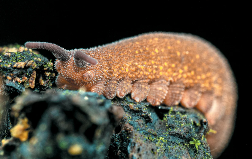 Barbados Brown Velvet Worms (Epiperipatus barbadensis) are native to Barbados. This species inhabits tropical rainforests. This animal will live for 5 to 6 years and can grow to 3.5 inches long. They are nocturnal carnivores that feed on other invertebrates. This type of animal is considered the common ancestor of the roundworm (leading to human) and arthropod branches on the tree of life.