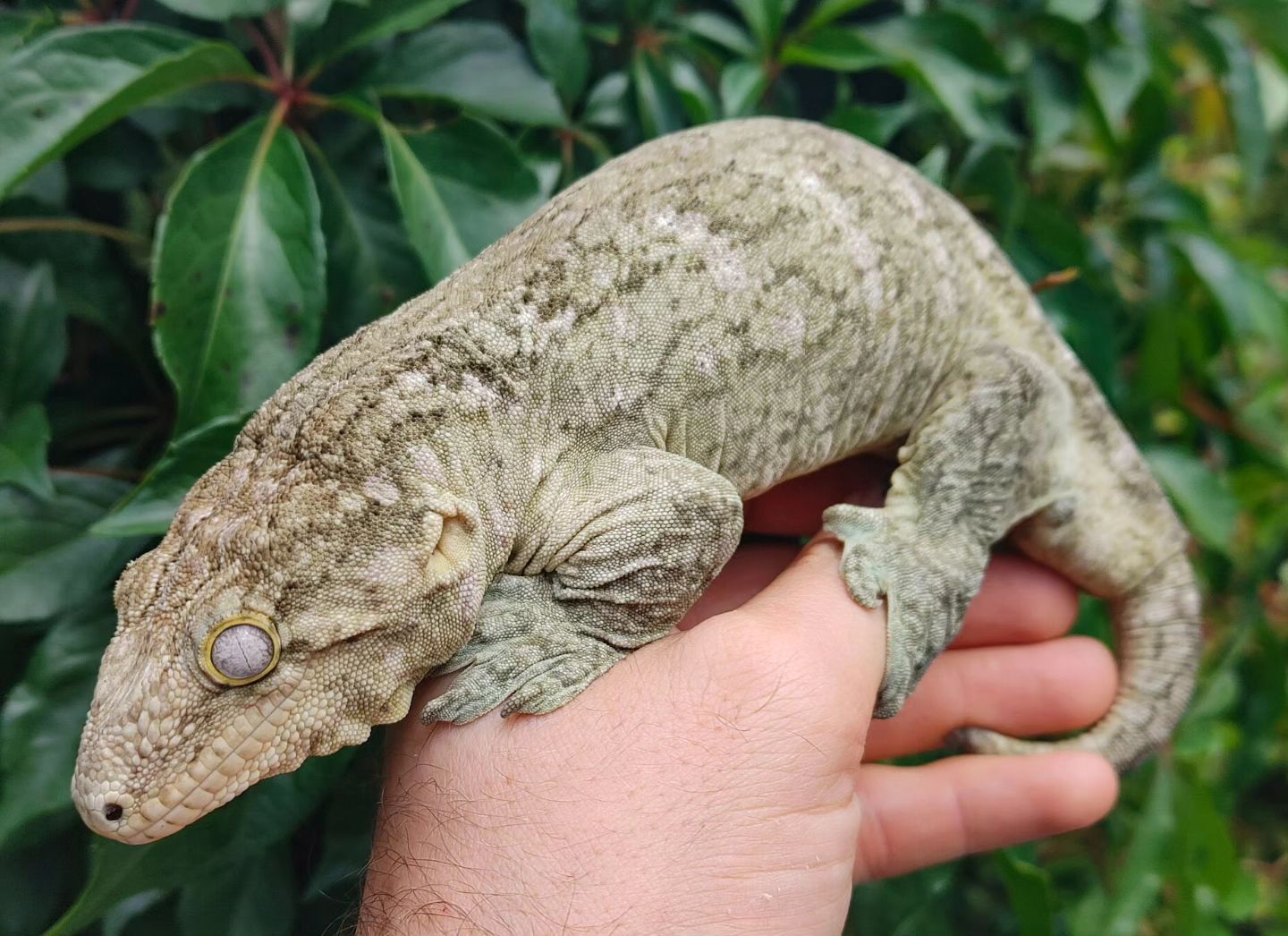 Leachie Geckos (Rhacodactylus leachianus) are native to southern New Caledonia, an archipelago off of Australia. They inhabit tropical evergreen forests. These animals can grow up to 17 inches long and in captivity can live up to 20 years. They are the largest species of gecko in the world, a trait attributed to a phenomenon called island gigantism. Despite being ectotherms, the animals are nocturnal. Leachie geckos are omnivorous and regularly eat both insects and fruit. They are also important seed dispersers due to their frugivorous nature.