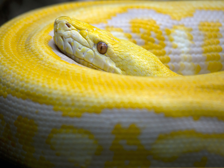 Reticulated Pythons (Malayopython reticulatus) are native to South and Southeast Asia. They inhabit tropical rainforests and woodlands, often nearby grasslands and bodies of water. They can grow to be more than 20 feet long making them the longest species of snake in the world. They are nocturnal carnivores that can live up to 25 years. They have specialized heat sensing organs called pit organs along their face that help them to hunt. They are also known to be excellent swimmers.