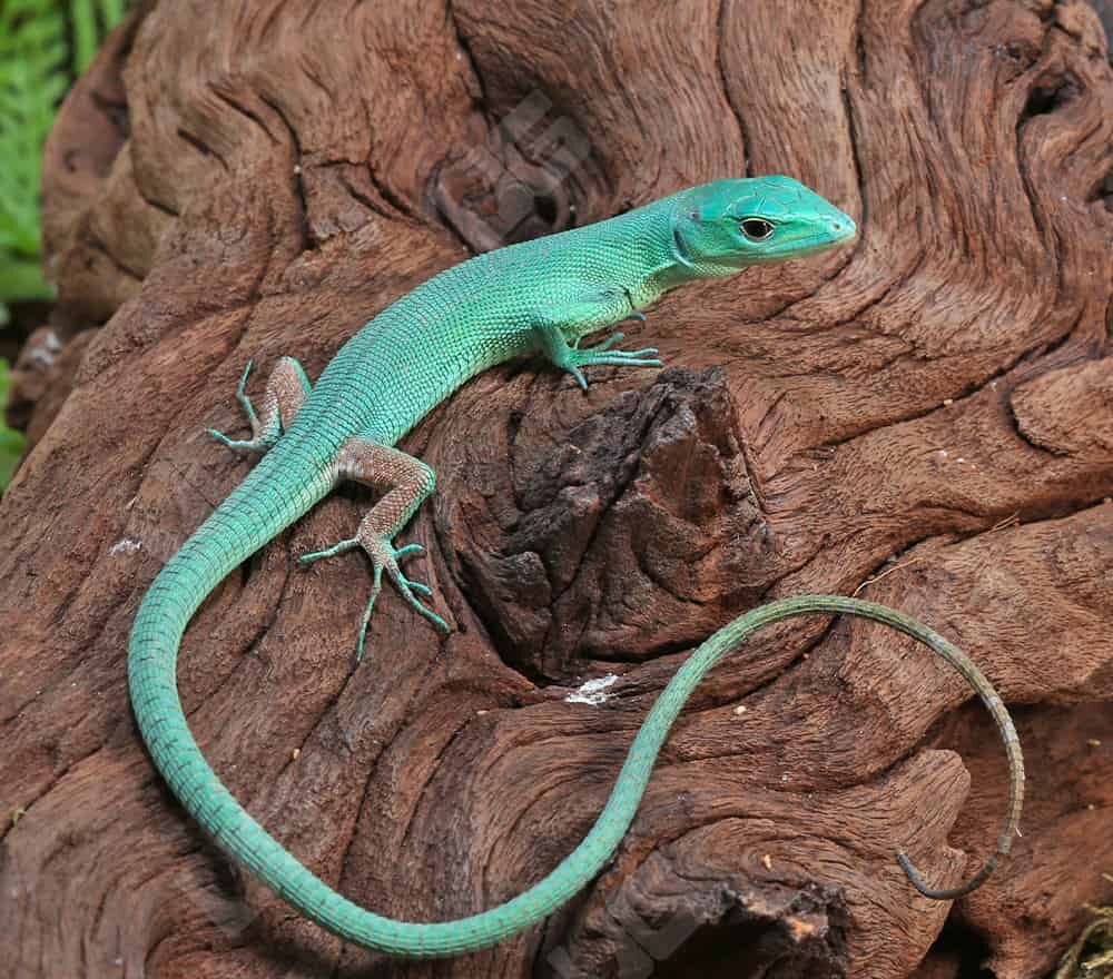 Green Keeled lizards (Gastropholis prasina) are native to the tropical rainforests and woodlands of Eastern Africa in Kenya and Tanzania. They are diurnal and arboreal insectivores. These animals live for 10 to 15 years and grow up to 16 inches long with their tails making up at least 70% of their total length. These tails are also prehensile and help them in climbing. They are named for the unique shape of their scales, each of which has a ridge, called a keel, in the center.