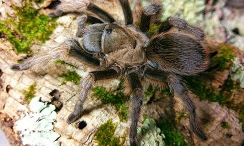 The Chiricahuan Gray Tarantula (Aphonophelma gabeli) is named for its primary habitat, the Chiricahuan Desert. Their coloring ranges from light brown to gray, allowing them to camouflage into the rocky landscape of the desert. They can grow up to a 5.5” leg span, with females tending to be larger than males. They feed on insects like crickets and grasshoppers and create burrows in dry, loose soil in order to quietly wait for their prey. This species is known for its docile personality, and they lack potent venom. Female Chiricahuan Gray Tarantulas can live for up to 25 years with males living around 7 years.